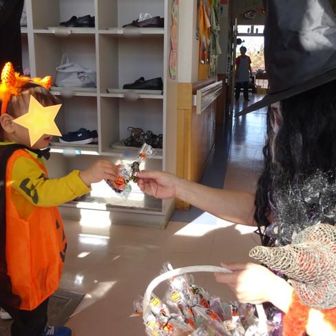 大山児童館の元気な子供たちが仮装の姿で遊びに来てくれました。